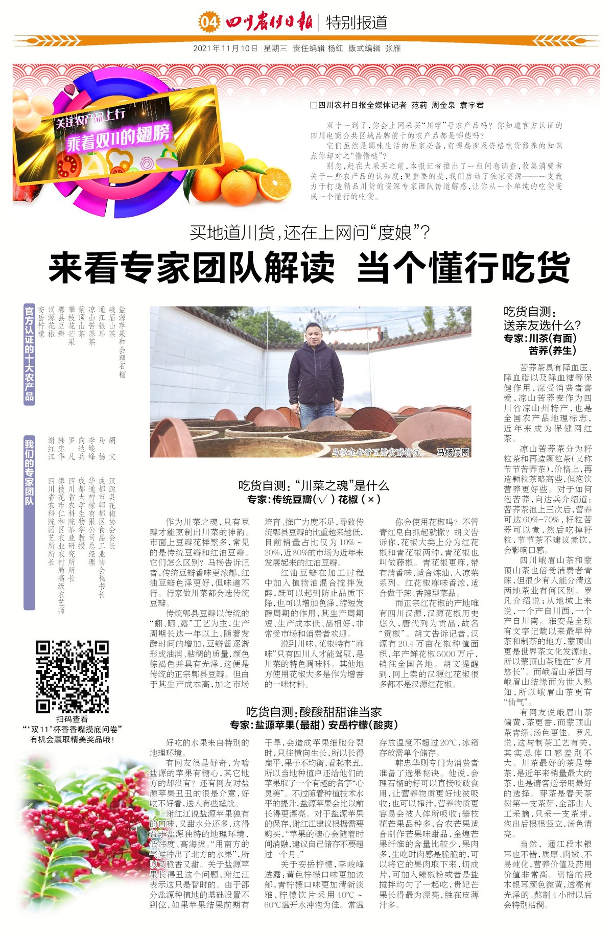 别急,赶在大采买之前,本报记者推出了一组问卷调查,收集消费者关于一些农产品的认识度;更重要的是,我们启动了独家资源——一支致力于打造精品川货的资深专家团队传道解惑,让你从一个单纯的吃货变成一个懂行的吃货。