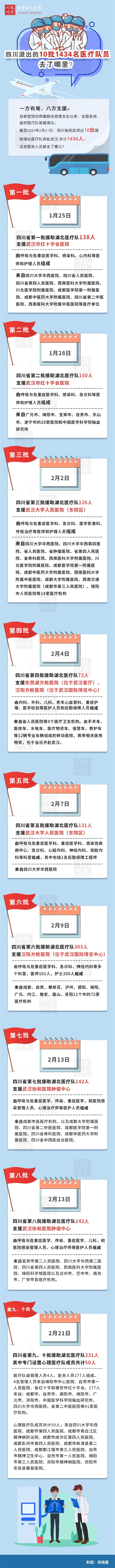 支援湖北、支援武汉,新型冠状病毒肺炎疫情发生后,四川已先后向疫区选派8支医疗队,共计1203名医护人员奋战在武汉疫情防控阻击战的第一线。