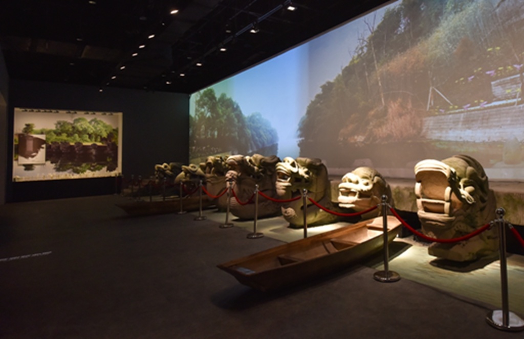 它以展出宋代石刻为主题和重点,展现“石刻惊现”“雕梁画柱”“梦回南宋”“铁血神臂”等重大历史景象,充分展示石刻文化、南宋文化,构成了气势恢弘的巨幅的石刻版《清明上河图》。