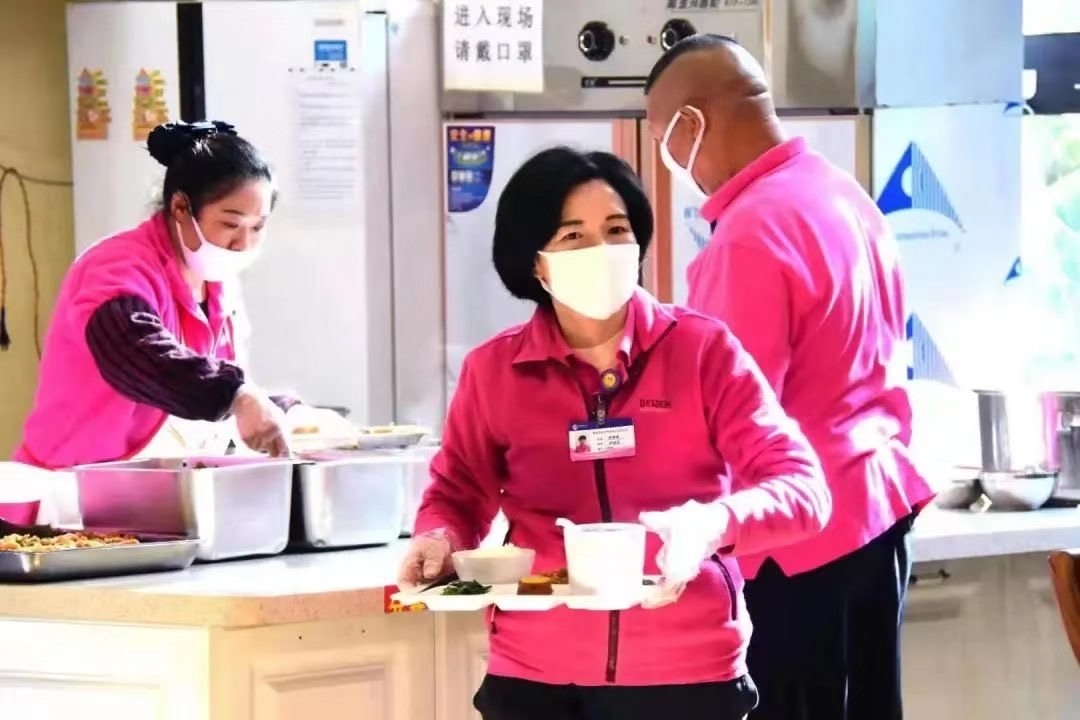 不仅能堂食,长者餐厅还提供“外卖”服务。11点不到,护工邹璐佳和同事拎着打包好的盒饭出发了,她们要赶在十一点半之前,把饭菜送到附近小区居民家中。同一时间,家住东区的李凤芝正在等待饭菜上门。“去年‘长者餐厅’正式开业,孩子立刻给我报了名,午餐15元、晚餐12元,非常实惠。”