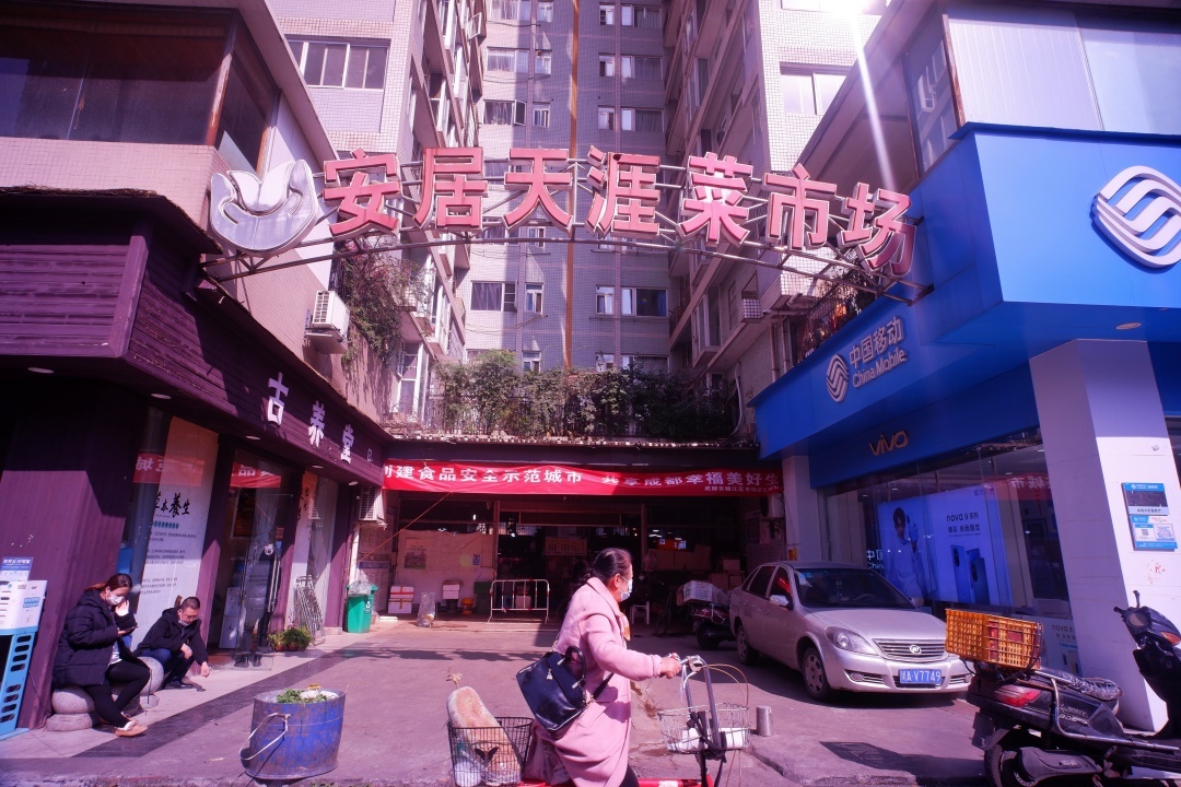 位于成都市锦江区武成大街的安居天涯菜市场,同样严格落实戴口罩、亮健康码的措施,工作人员都各司其职加强防控工作。