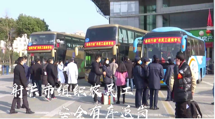 2月19日上午160余名射洪籍农民工踏上返岗之路。