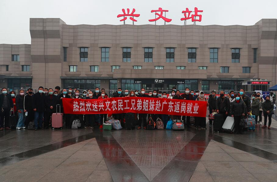 该趟农民工返岗专列,共有来自宜宾各县区、泸州市叙永县等地的334名返岗人员,他们已搭乘13:30从兴文站发车的高铁直达广州南站。