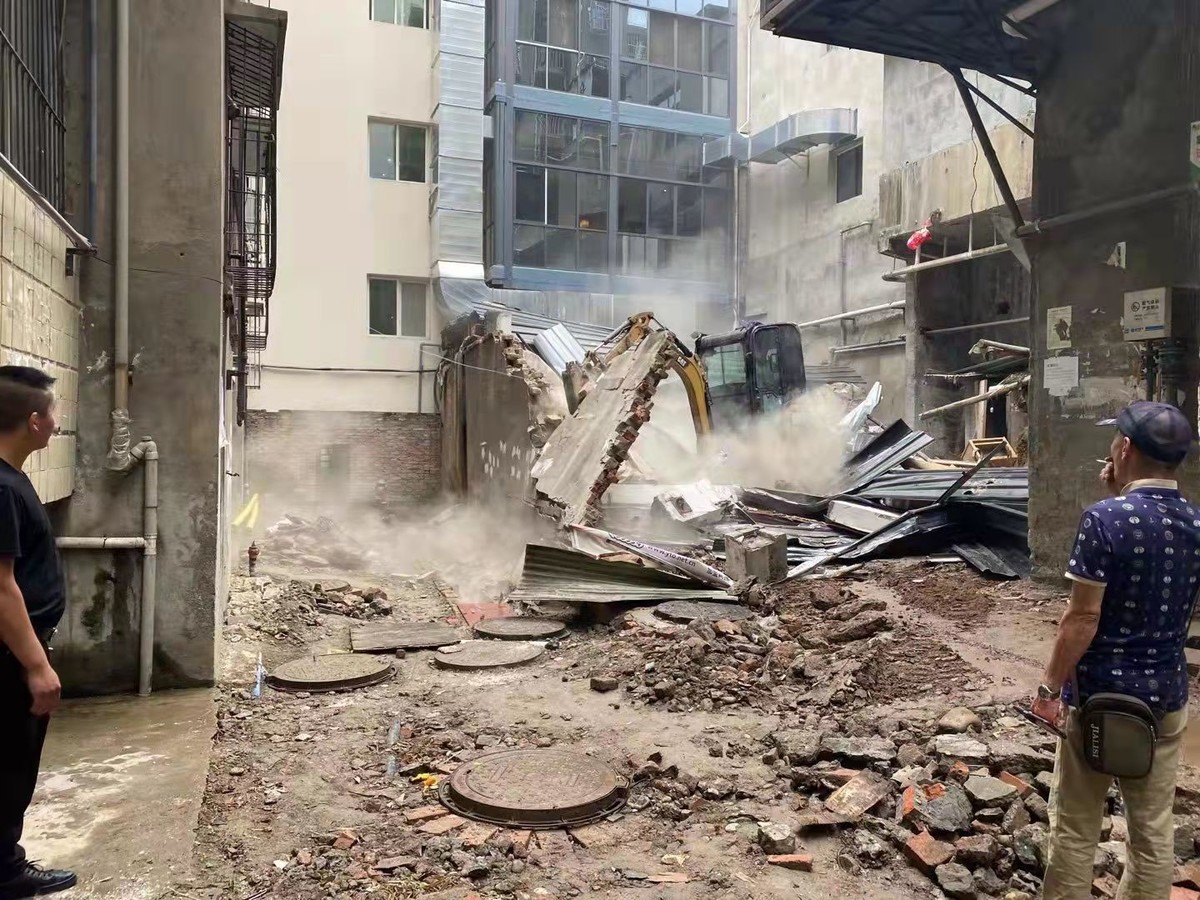 今年3月,隔断两个小区的围墙成功拆除,小区中的违章建筑也得到清理,腾出来的空间不仅可以开展活动,还规划了停车棚、充电桩和健身器材。因为共享一个小区出口,大家还计划设置一个门岗,彻底结束两个小区“没有大门”的历史。