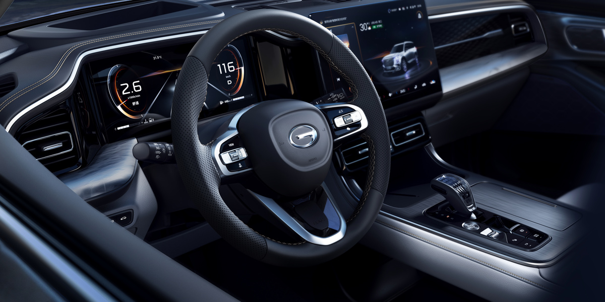 在车内,全新第二代GS8的灯依然不含糊。在仪表台、副仪表板、前后门板上均有32色多彩律动氛围灯,营造出环绕式、沉浸式的氛围。同时智能氛围灯可随音乐律动、可跟随驾驶模式变换,兼具美感与性能,此外,副驾IP面板还配备专属氛围灯。