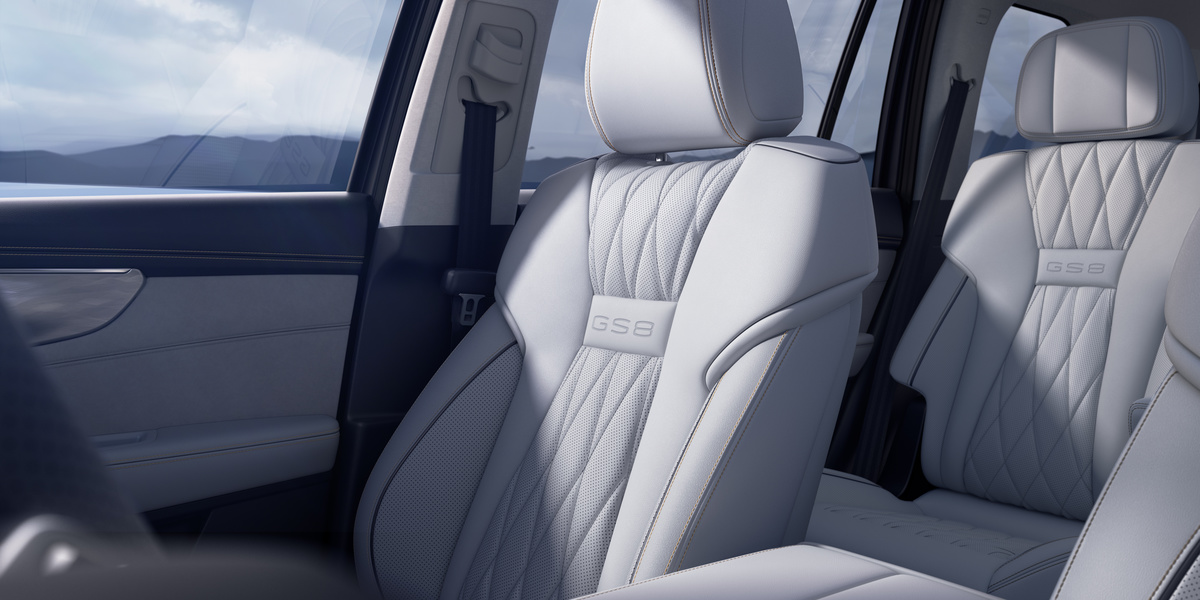 据厂家介绍,全新第二代GS8座椅设计灵感来源于古代将军铠甲的座椅,座椅材质皮纹纤柔,亲肤细腻,搭配菱影渐变立体绗缝纹理和真皮打孔,整体充满科技感与豪华感。