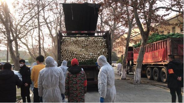 由五粮液员工自发筹集的7.6万斤蔬菜到达武汉
