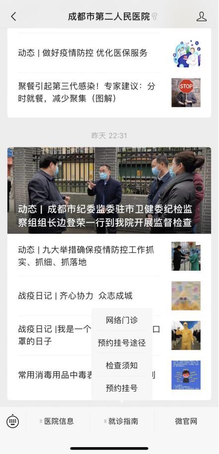 为在疫情防控工作中充分利用“互联网+医疗”的优势作用,在满足有效就诊患者的需求的同时,合理减轻医院门诊压力,避免人员在医院交叉感染。2月21日,由成都市第二人民医院互联网医院管理办公室、精准扶贫办牵头,联合医院各部门、各科室开通了“成都市第二人民医院互联网诊疗咨询服务平台”,为广大患者朋友提供免费的疾病咨询,让患者足不出户,即可完成从病情咨询、线上问诊的就医流程。