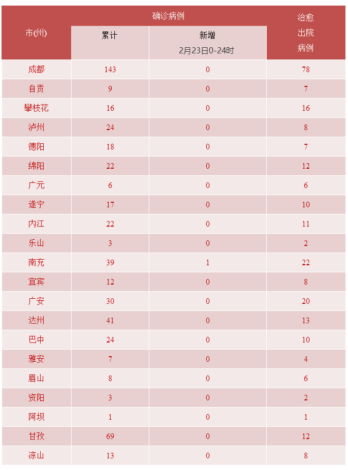 2月23日0-24时,我省新型冠状病毒肺炎新增确诊病例1例,新增治愈出院病例7例,新增疑似病例8例,无新增死亡病例。