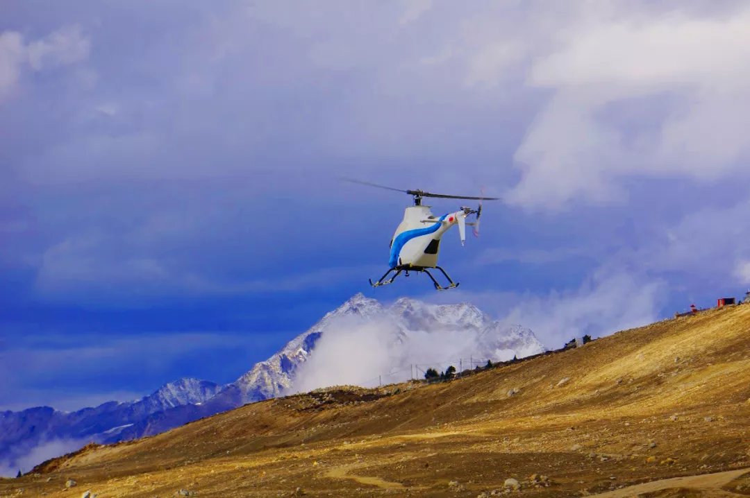 执飞本轮试验任务的无人直升机全机长7.87米,旋翼直径6.4米,最大航时8小时、最大航程900公里、使用升限6500米。试验任务对无人直升机高原部署能力进行了全面考核,充分贴近实际应用场景,完全还原复杂环境条件下,保持了较高出勤保障与任务执行效率。试验过程中,无人直升机沿任务航线爬升至6500米海拔任务区域,在飞跃越雅拉雪山山口时突遇强垂直风场(最大水平风19米/秒,最大垂直风4米/秒),无人直升机姿态、航迹稳定,正常飞行并顺利完成测试任务。