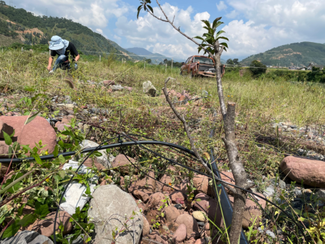 人地矛盾的最为紧张的河谷地带,优质滩地被泥石流破坏,沦为行洪通道,无土、缺水、少肥寸草不生。项目组决定进行开荒试验,把后备土地资源释放出来。首先在乱石滩里挖坑填土,布设水肥管理系统,种上果桑、樱桃、脆李、金银花等多种适宜性相对优良的果树和中药材品种,再把河沟水抬升,使其倾斜下渗到植物的根系。两年多过去了,寸草不生的滩地上,长出了一排排小“盆景”。“成活率最高能达到90%以上,最少也有80%左右。”省农科院副研究员王谢欣喜地说。