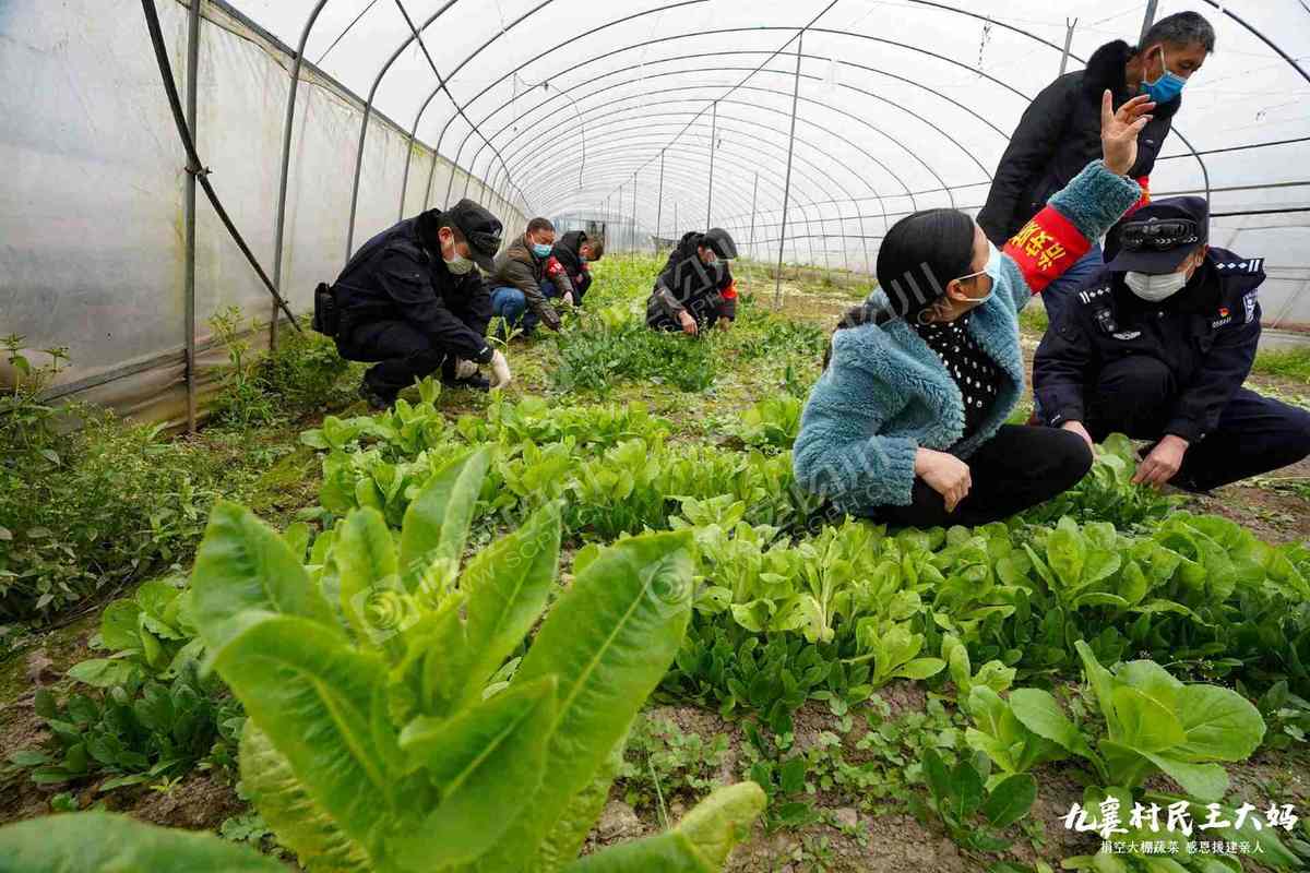 2月19日,在汉源县九襄镇木林村村民王清霞的蔬菜大棚内,她请来邻居、村干部、社区民警,帮助她收割捐给湖北鄂州市的蔬菜。