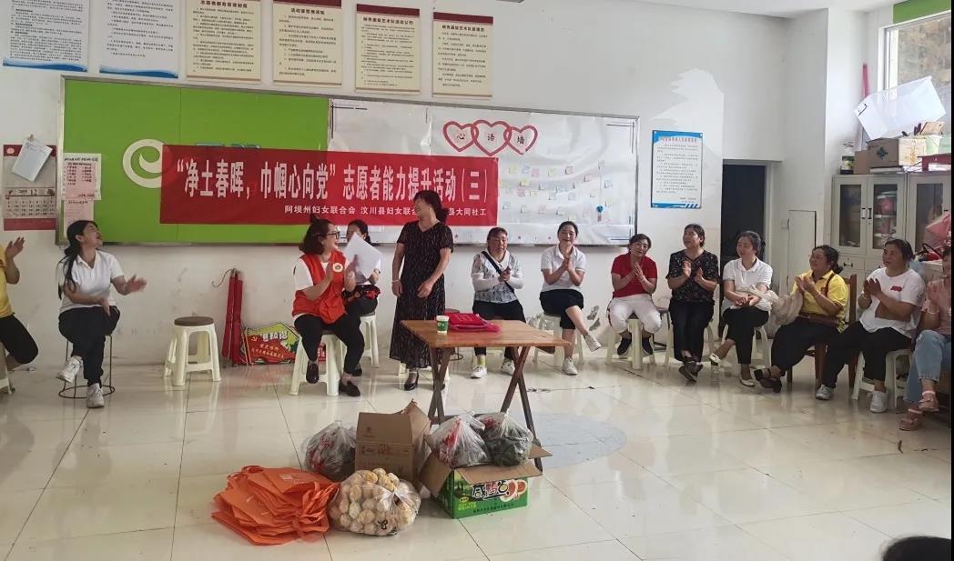 在阿坝州汶川县,就有一支巾帼志愿队伍——汶川大同巾帼志愿“阳光站”。自成立以来,在省、州、县妇女联合会的大力指导下,“阳光站“立足社会工作专业方法和专业服务机构的优势,以“阵地建设+专业社工+巾帼志愿者孵化”的模式,围绕“净土春晖”“巾帼阳光行动”和“巾帼大宣讲”等主题,开展“巾帼风采,阳光同行”巾帼志愿培育项目。