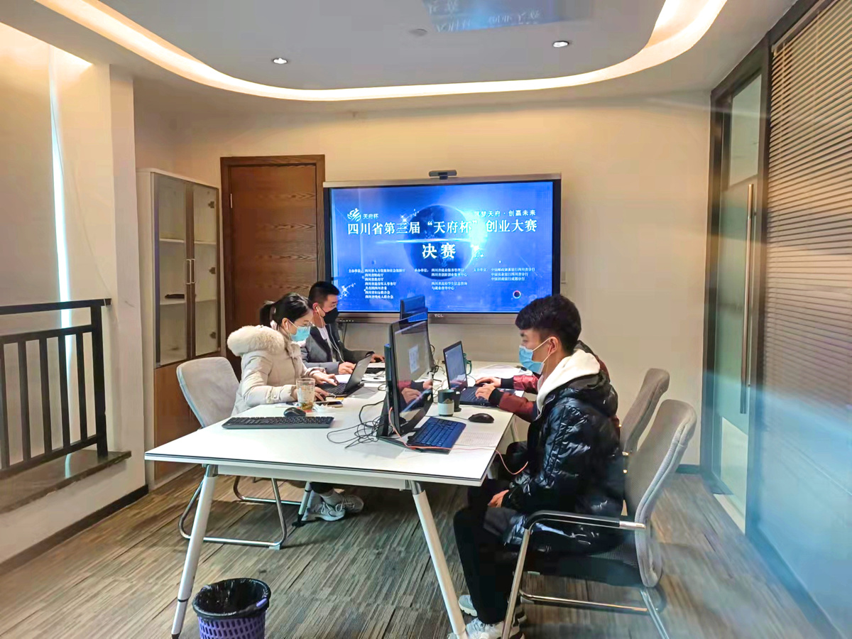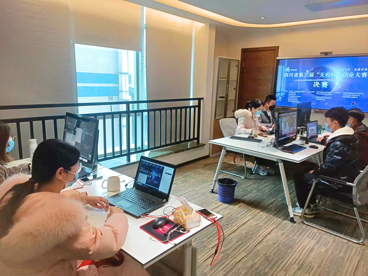 为严格落实疫情防控措施,四川省第三届“天府杯”创业大赛决赛以线上评比的形式举行。 在决赛过程中,评委、评审监督、统分员和工作人员按组别进入线上会议,播放路演视频及PPT。比赛时间采取“5+2+2”模式,选手路演5分钟,PPT审阅2分钟,评委打分2分钟。每组设5位评委,从创业者与创业团队、项目运营情况、经济效益及发展前景、社会效益四个方面来进行评分,四个方面的平均分为项目最终得分。