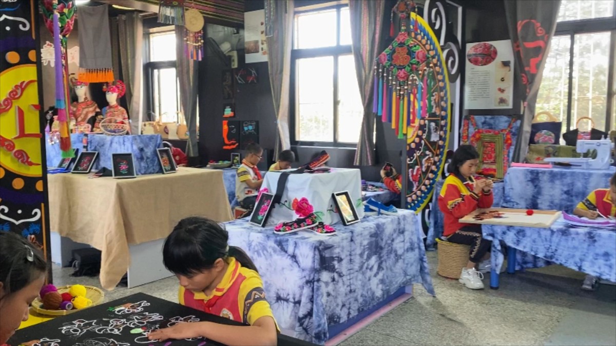平地镇中心校的“俚濮彝绣工作坊”于今年4月成立。在这里,俚濮彝绣与日常教学相融合,学生们当上俚濮文化的“传承人”,主要学习俚濮彝绣中饰品、包、服饰、鞋子这四大类绣品的纹样、颜色与针法。