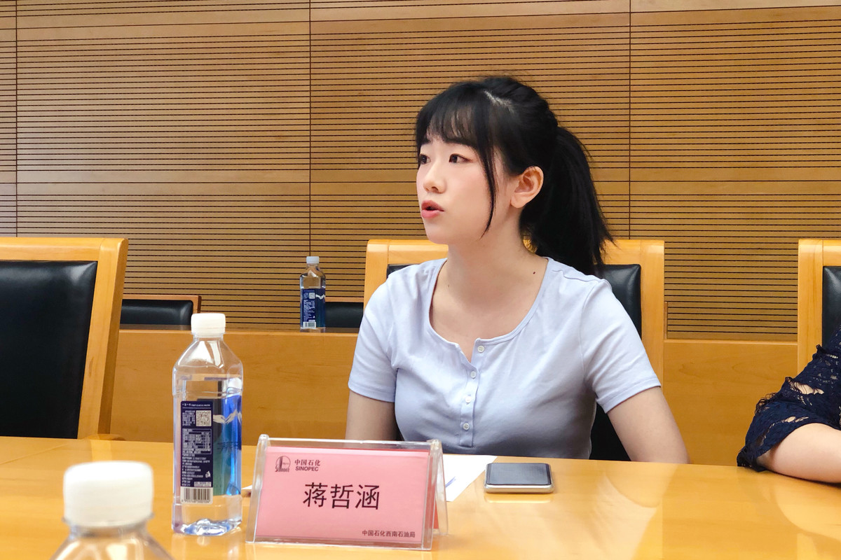 ——重庆大学蒋哲涵,在中国石化西南石油局有限公司党建宣传部实习。