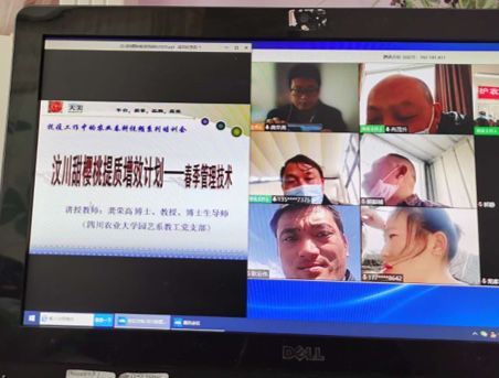 “小叶病该打什么药?”“生长过程中果子变小变黄是啥子原因?”…… 2月25日,一堂春耕技术培训会在互联网“云端”开播,四川农业大学园艺学院龚荣高教授为汶川县200多名村民作了甜樱桃春季管理技术培育。一根网线连接起果农和专家,果农踊跃提问,龚老师一一耐心指导。