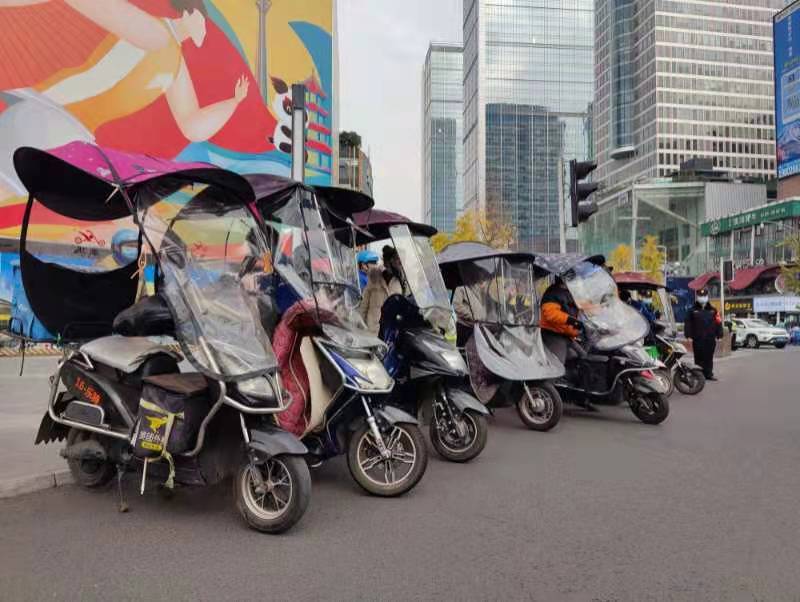 今天,按照市交管局的统一安排,交警三分局对电动自行车的此类违法进行了专项整治。半个小时的时间,10个驾驶人挨罚。民警对他们分别处以50元罚款,并现场对加装棚进行了拆除收缴。