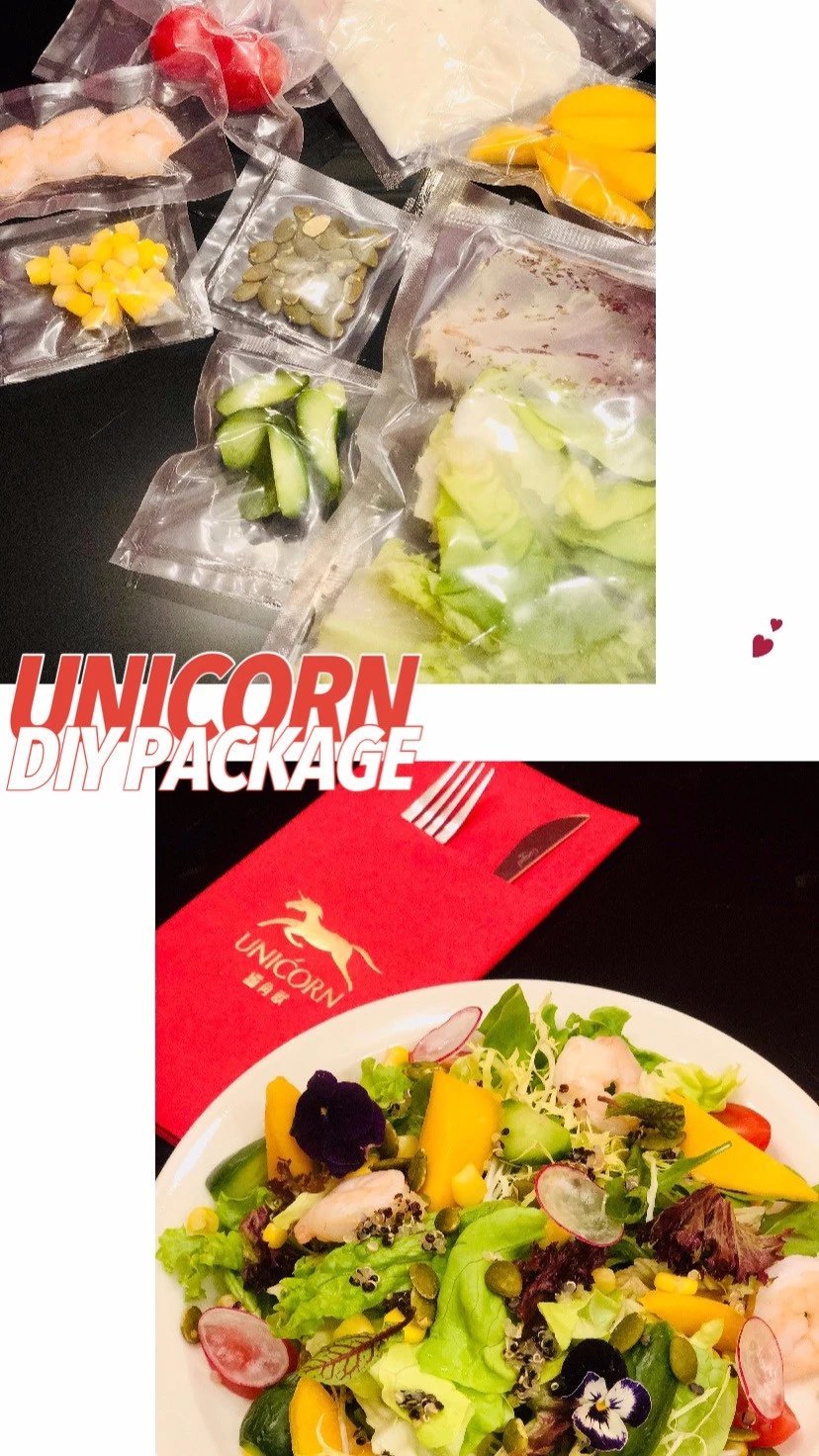 不同于其他店铺的成品,独角兽咖啡的菜品通常是半成品。将材料准备齐全、封闭打包,再配上制作说明后,通过外送平台寄到顾客家中,由顾客自行完成搭配搅拌、加热翻炒等后半部分操作。在这样有“新意”和“心意”的模式下,顾客不再是坐等服务的“上帝”,而是参与到家庭生活、享受烹饪乐趣的“美食家”。