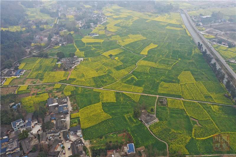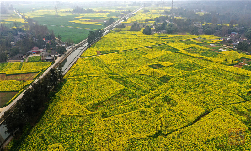 2月26日,在崇州市境内的重庆路沿线,盛开的油菜花成为一道靓丽的风景。目前,四川省崇州市一条长达58公里的稻香旅游环线的油菜花争相开放,一块块稻田和油菜花将一路的风景串连起来。连接崇州隆兴镇、桤泉镇、集贤乡、燎原乡、王场镇、白头镇,环线面积100多平方公里,沿途满眼川西新农村风情。