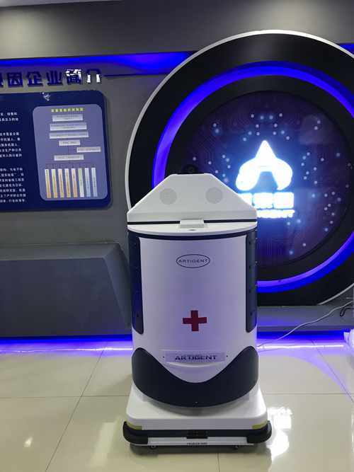 具体而言,这款外表有些类似洗衣机的机器人,能够代替医护人员测量病人体温、心率、血糖和血氧等,同时还能自动分配、发放药品和指导病人服药,自动进行紫外杀菌和喷洒消毒作业,并提供远程问诊服务。