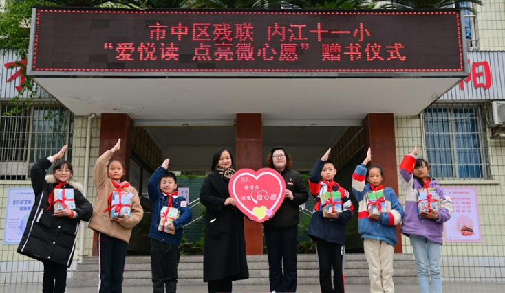 11月16日至18日,内江市新华文轩内江书城开展为期3天的“爱悦读·点亮微心愿”书籍配送活动,爱心志愿者先后来到内江市实验小学校(东区)、内江第十一小学校、靖民镇中心校、四合镇中心小学校、永安镇中心小学校等12所中小学校,为200余名儿童点亮了阅读“微心愿”。