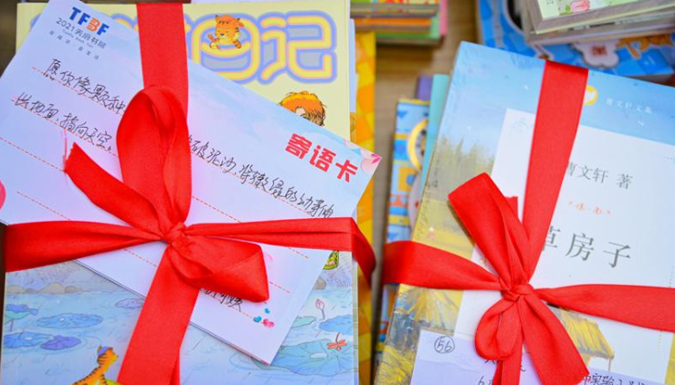 “如果图书是打开通往世界的一扇门,就让我们用实际行动为孩子们插上遨游世界的翅膀。”内江市新华文轩内江书城相关负责人王莲说,将写着暖心寄语的书本递给孩子们。