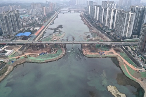 2月28日下午2时,成都简阳市简州大桥,桥上车来车往,桥下一片忙碌的施工景象。“现在,我们加紧复工复产,利用沱江枯水期尽快把两个辅桥修起来,然后再进行老桥的拆除加宽新建。”华西集团四川一建简阳空港大道项目指挥部书记陈光华告诉记者。