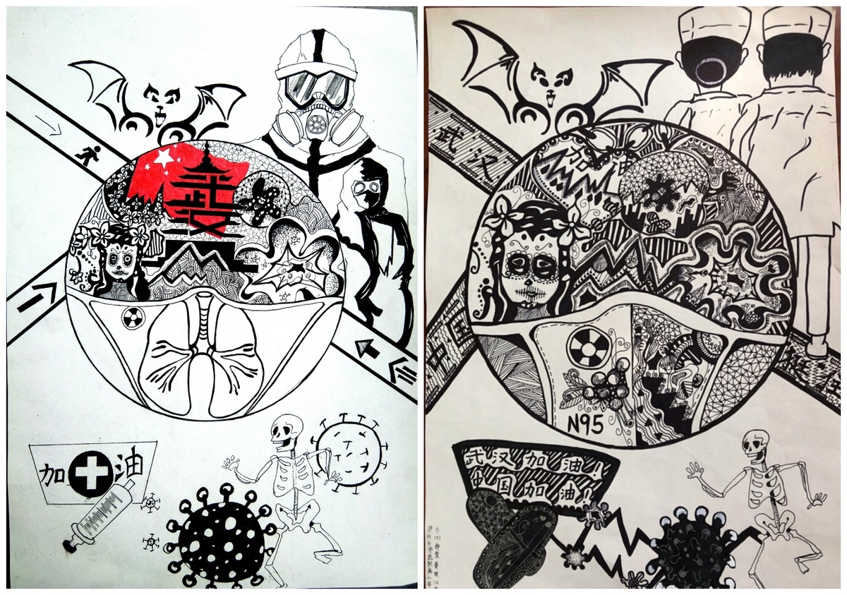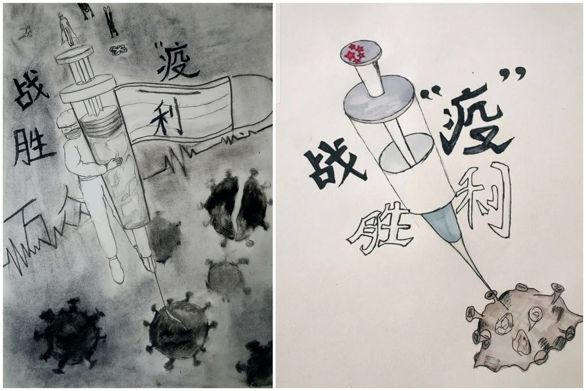 改造作品表现了医护人员用医疗去对抗病毒。很大程度上保留了小朋友的作品元素与构图,对人物形象和手部进行了细致刻画。同时又保留了动漫的趣味。