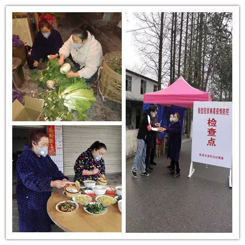 图片说明:在成都郫都区德源街道和众村疫情防控工作点,工作人员不分白天昼夜24小时巡逻排查,奋战在一线。和众村党员王娟母女二人主动为设卡工作人员送来一碗热腾腾的饭菜。王娟说:“你们在这守一天,我就为你们送一天的饭。”