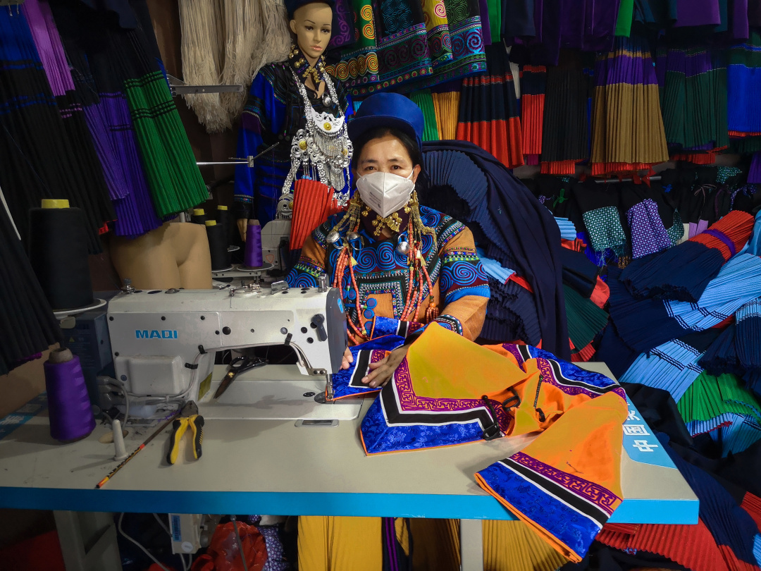 图片说明:西昌市三岔口彝族服饰店老板阿达莫,积极响应政府“有序复工复产”号召,在做好自我防护的情况下,开门营业。