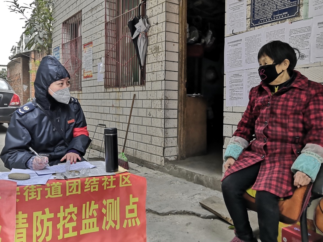 图片说明:内江威远县委组织部组织一股副股长陈雨,是一名战斗在疫情防控一线的“80后”年轻党员。新冠肺炎疫情爆发以来,她主动放弃春节假期,成为社区抗击疫情突击队的一员。在防控一线,不畏艰险、连续奋战,她在萝卜巷卡口点执勤,配合街道社区及辖区派出所工作人员开展测量体温,人员登记,消毒等工作。她说:“这场新冠肺炎疫情,早已不只属于某一群人的战役。比起奋战在抗击疫情一线的医务工作者,我的付出不算什么。坚守岗位,每天做到宣传到位、防控到位、排查到位,尽我的一份力量。”