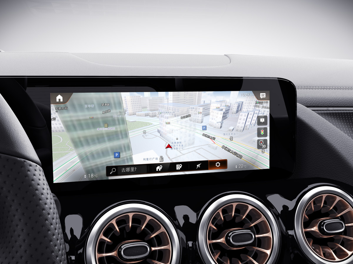 全新EQA与全新EQB搭载了MBUX智能人机交互系统,并采用了全新的高德定制导航A-Map,将“EQ优化导航”等智能电动出行的功能与本土场景化的导航服务相结合,提供智慧便捷的出行体验。