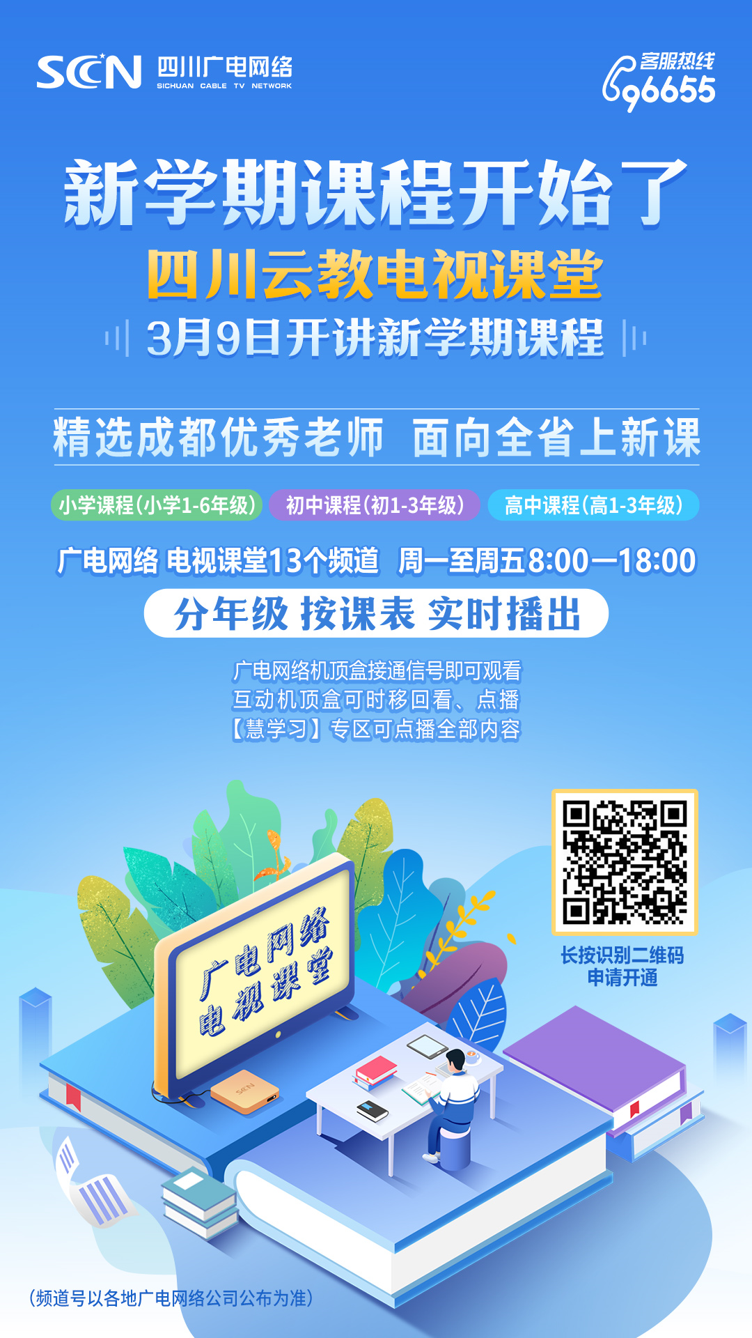 学生和家长们如何收看到此次开通的13个电视频道和点播内容呢?据四川广电网络“电视课堂”项目负责人介绍,凡是家中有广电机顶盒的学生家庭,只要接通电视信号就可以收看,具体的播出频道号以当地广电公布的频道号为准。互动电视机顶盒还可以免费点播所有的内容。广电网络24小时服务热线也将全天守候,需要开通的家庭可以拨打96655客服热线,第一时间满足学生、家长的开通需求。同时也可以关注“四川广电网络”微信服务号,同步下载课表,了解“电视课堂”开播情况。