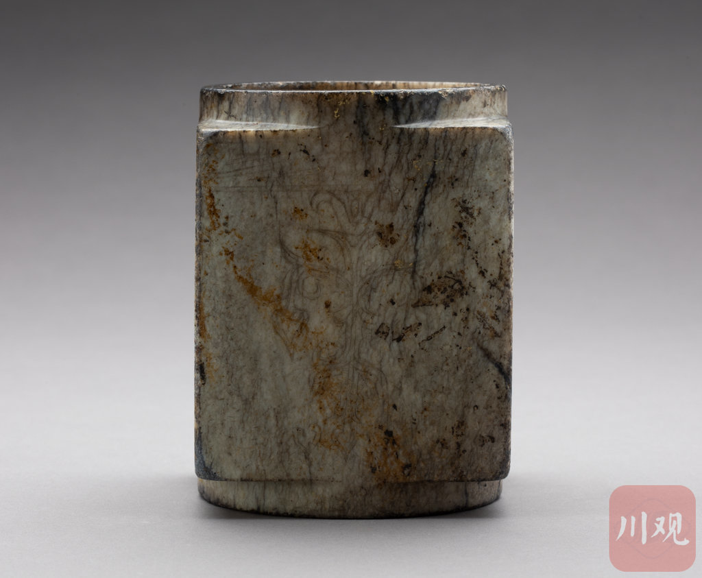据方向明介绍,与人们印象中玉琮都内圆外方的固有印象不同,当我们从俯视的角度看良渚玉琮时,会发现这些出土于良渚当地的玉琮,在环绕中心圆形射孔的并不是方形,“自始至终,良渚玉琮环绕圆形射孔的都是四道有弧度的凸边。而从正面看,又有上大下小的外形特征。这些都和后来三星堆、金沙等地发现的内圆外方的玉琮是很不一样的。”