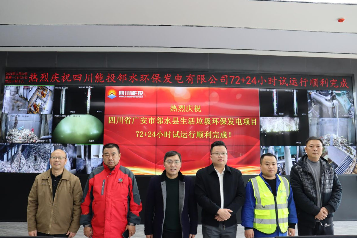 2021年11月22日14时,四川省能源投资集团所投资建设的邻水县生活垃圾环保发电项目(以下简称:邻水项目)72+24小时满负荷试运行顺利完成。这标志着邻水项目由建设期顺利进入运营期。
