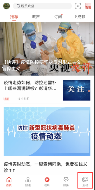 下载并打开川报观察APP,点击“互动”进入疫情防控求助通道,即可发布销售信息。