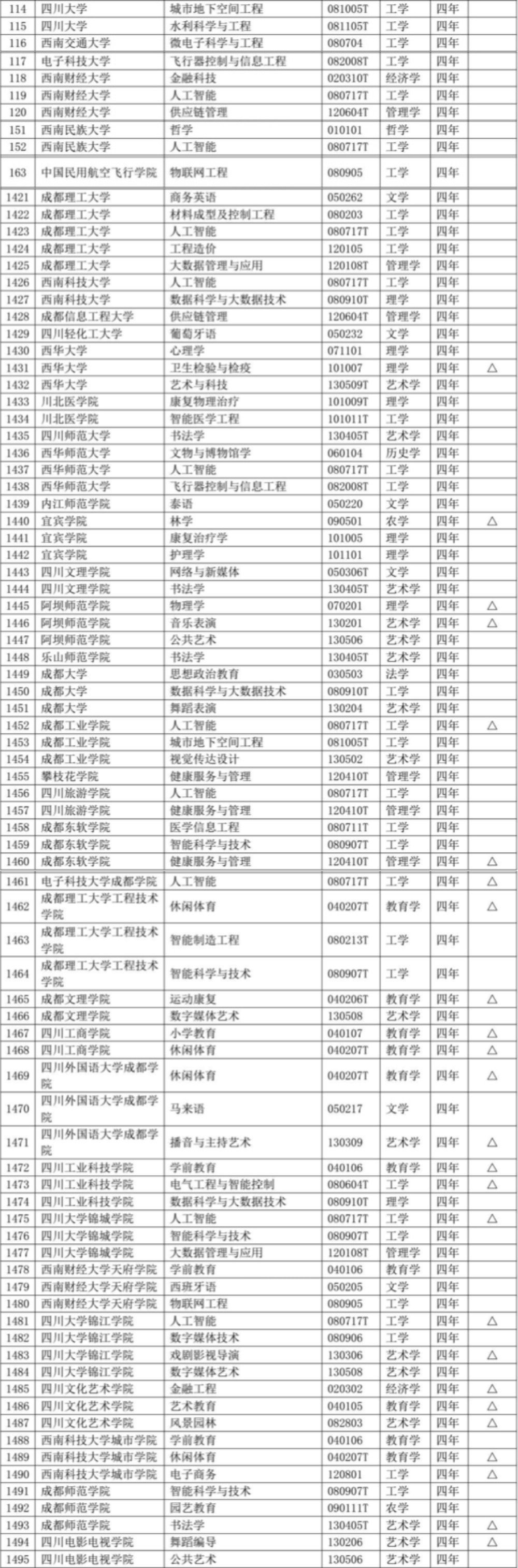 四川高校新增备案本科专业名单: