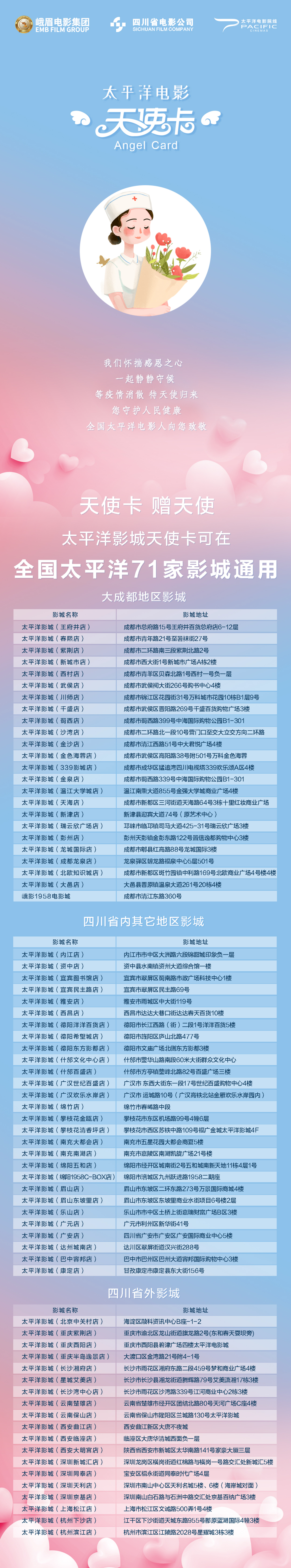 太平洋院线·四川援助湖北医护人员电影“天使卡”