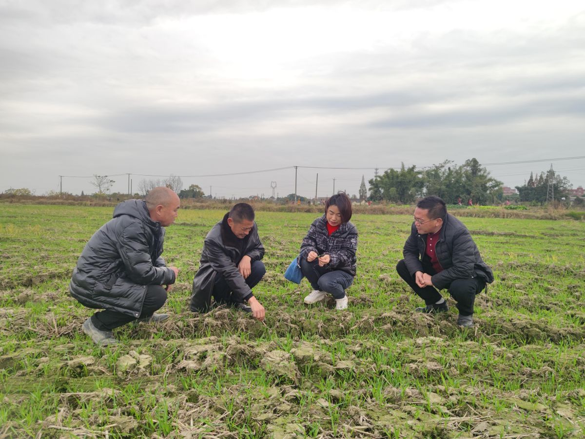 11月21日,四川农业大学副校长刘登才来到崇州市粮油现代农业园区的麦田;