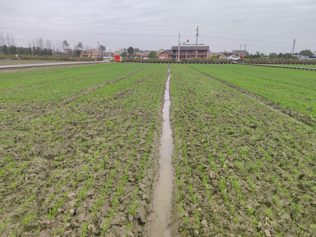 除了邛崃市的做法外,还有未雨绸缪的办法。在大邑县现代农业(粮食产业)园区,麦田间却是另一番景象,明水淤积少、小麦出苗健壮、长势整齐良好......樊高琼解释,大邑示范片在水稻收获后开沟排湿,结合今年天气情况适期旋耕灭茬结合飞机播种,小麦出苗质量整体较优。