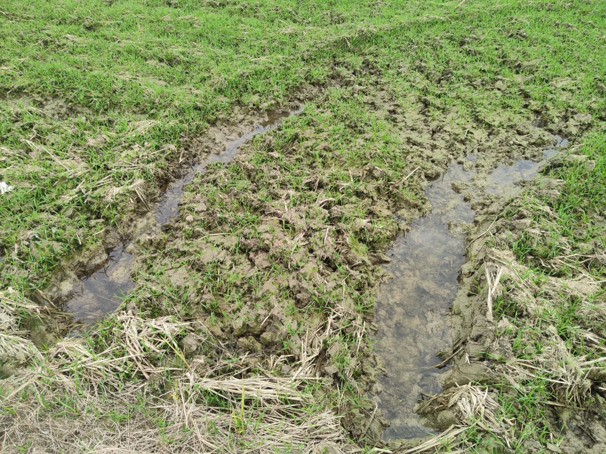 “今年雨水多,土壤湿度非常大。”与崇州情况相同,在邛崃市骑江村的麦田里,机械碾压过的田块留下的沟壑里积水更为明显。当地种粮大户周家林告诉记者,前段时间这些麦田就像秧田一样,没法播种,很多田块推迟到了11月10号左右。在他的记忆中,今年的湿害情况为十多年一遇。