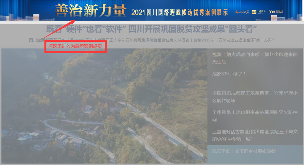 最终,活动组委会将结合网友点赞数、案例办理实效指数、专家评分等,推选出“善治新力量——2021四川网络理政优秀案例”。