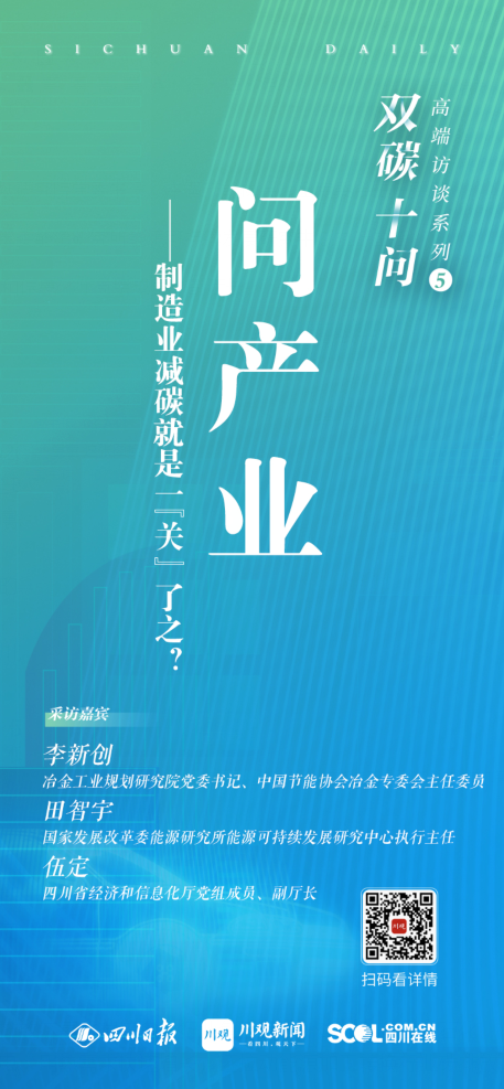 伍定:从我省来看,2019年,全省直接碳排放2.77亿吨左右,其中工业领域碳排放约占55.5%,是产生碳排放的主要领域之一,对整体实现碳达峰、碳中和具有重要影响。特别是钢铁、有色金属、建材、石化化工4个重点行业,更是重中之重。