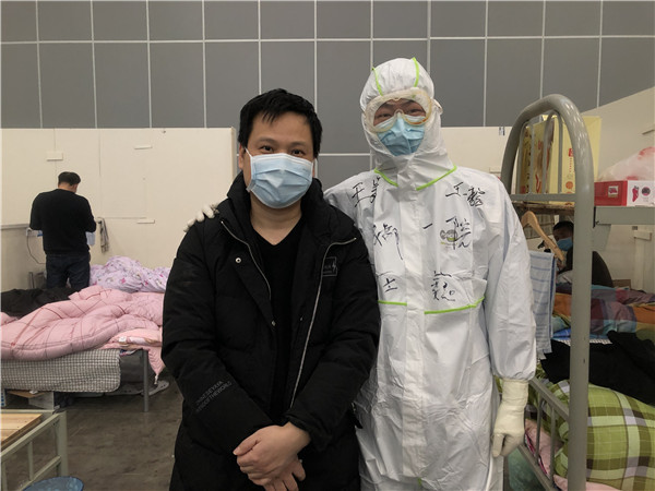病人王巍1月20日第一次发烧,1月31日被确诊。2月11日,医院第二次检测结果一阴性一阳性,被收入武汉市汉阳国博方舱医院医治。刚一入院,他就遇到了前来查房的医生王巍。隔着厚厚的防护服,病人王巍看不清楚医生王巍的长相,也不知道眼前这个全副武装的医生竟然和他同名同姓。不过医生王巍身穿的防护服上写着“四川成一院王巍”的字样,还是让病人王巍心中一暖。这种奇妙的缘分也让两个王巍很快从医患关系变成了朋友。
