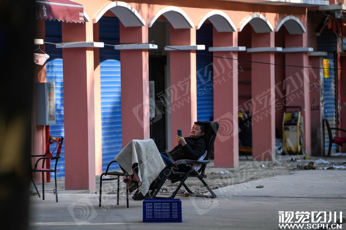 2月16日,四川国家紧急医学救援队的队员杨勇在药房长时间工作后,躺在椅子上小憩。