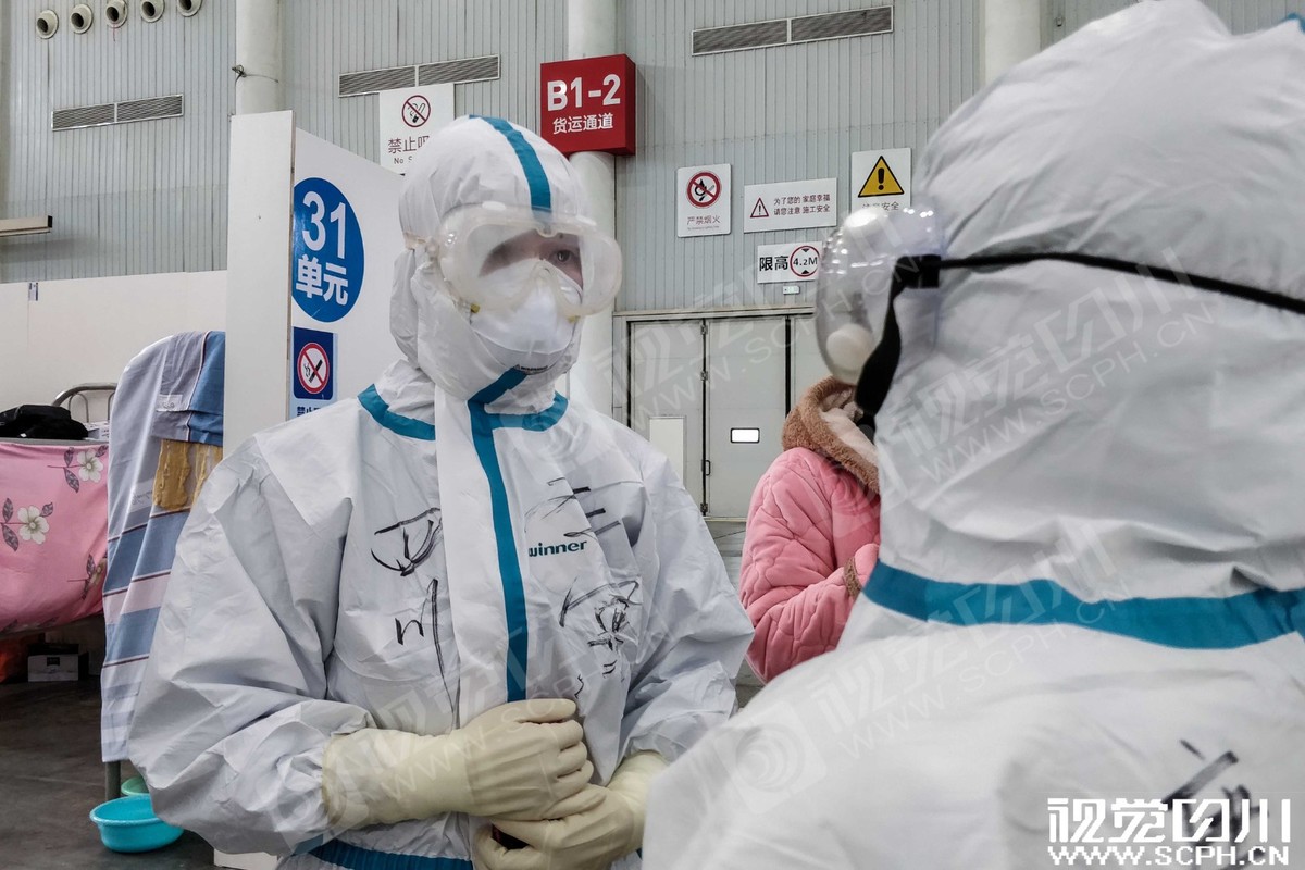 2月21日,终于有机会进入方舱医院拍摄了。这是我们第一次进舱,记得那天是个大晴天,穿着防护服的我被热得满身大汗,眼镜和护目镜完全被蒸腾的热气完全包裹,几乎看不清要走的线路。拍摄时间有一个多小时,但我感觉好像才拍了不到几分钟。