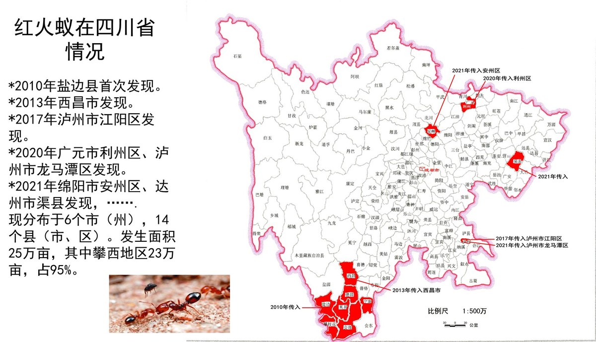 红火蚁,原产于巴西和阿根廷等南美国家,不仅危害植物,还会叮咬人或动物,造成灼伤疼痛甚至休克和死亡。