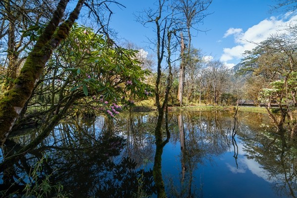 二郎山喇叭河的春天,是雪压枝头的温润,是破土而出的朝气,是让人流连忘返的秀丽。树木草林间,隐约能看见雪山一隅。据介绍,从山脚到山顶,乘坐高山索道,短短15分钟,却能看到两种截然不同的风景,焦山之巅的万里云海,正翻滚蒸腾,日出之时,便是万丈金光洒满天际。而这里的灵动和野趣,往往是游客可遇而不可求的欢乐体验——水鹿的身影穿梭在林间,藏酋猴群在枝丫间游荡,小熊猫探头探脑的张望着,天空偶尔掠过的飞鸟……“氧”眼、“氧”心、也“氧”人。
