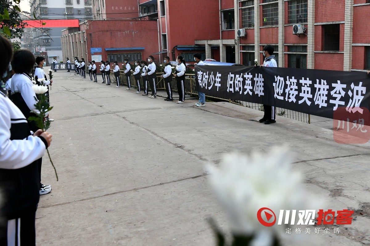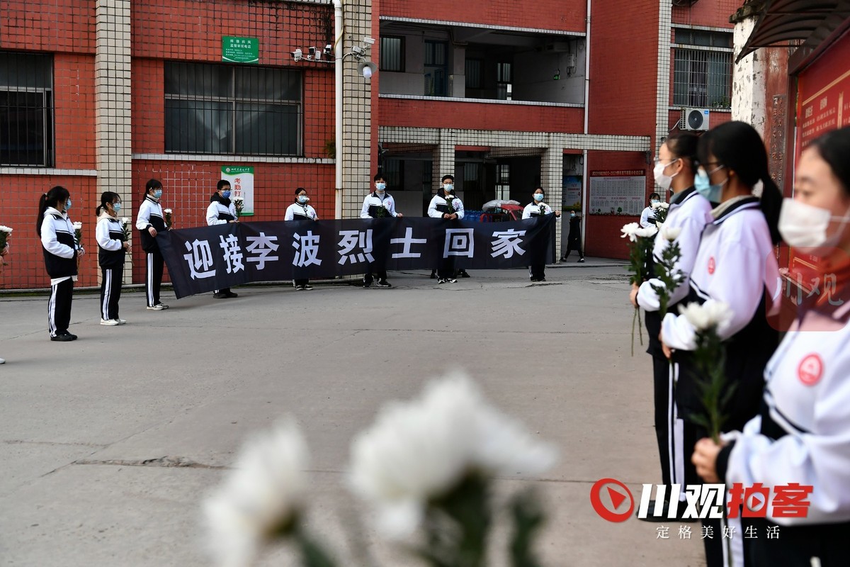 11月26日早上,李波烈士的骨灰在战友护送下抵达岳池县,这是他自2019年9月入伍以后,第一次“回家”。李波烈士“回家”的路上站满了闻讯而来的干部群众,沉痛悼念,深切缅怀,大家要送烈士最后一程。